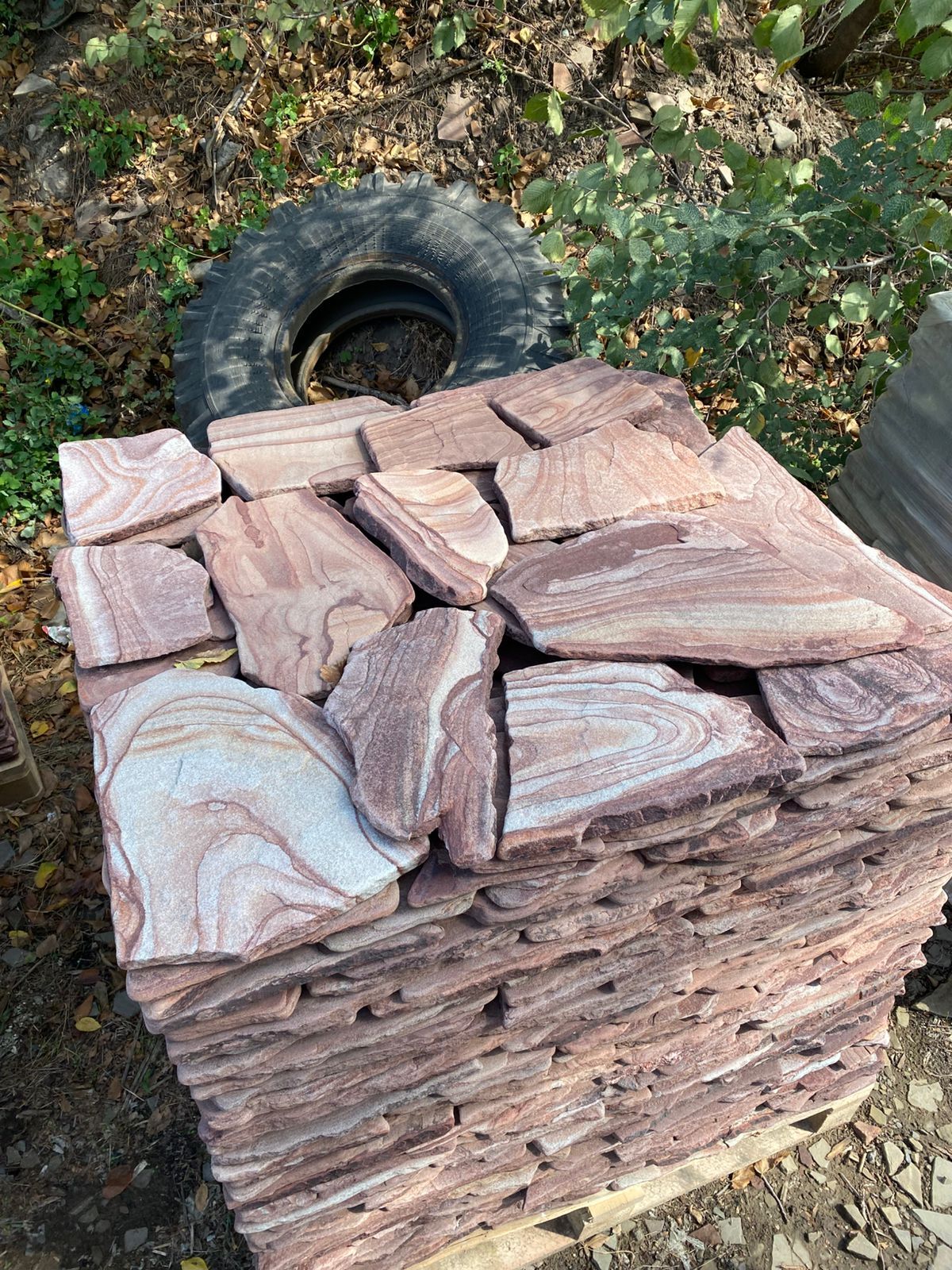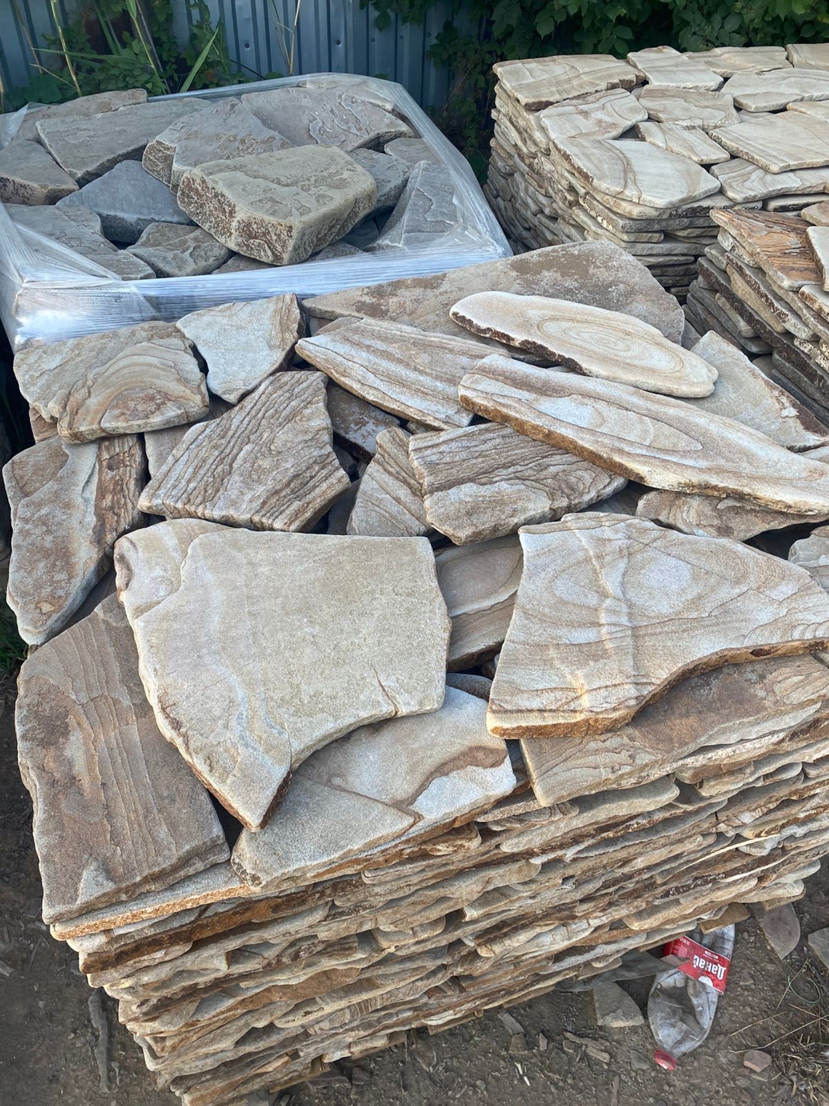 Для мощения дворов или дорожек рекомендуем брать камень плитняк толщиной от 3 до 5 см. Этой толщины будет достаточно для выдерживания нагрузки как движение груженых 40 тонных грузовиков.