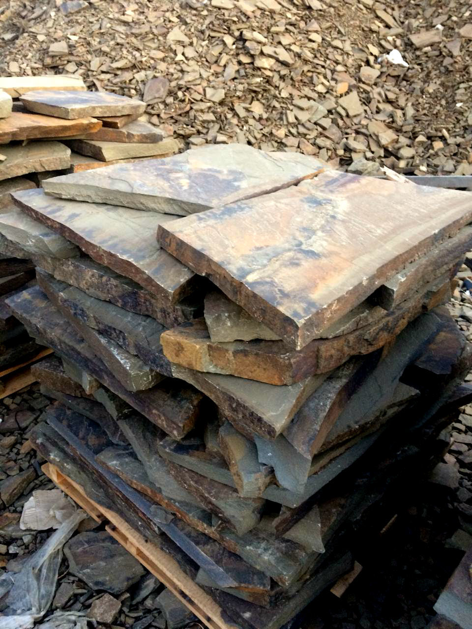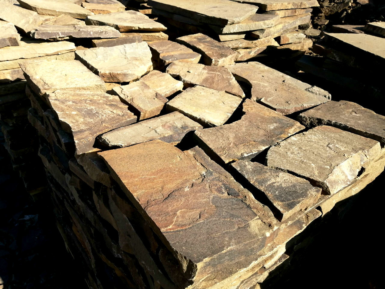 Для мощения дворов или дорожек рекомендуем брать камень плитняк толщиной от 3 до 5 см. Этой толщины будет достаточно для выдерживания нагрузки как движение груженых 40 тонных грузовиков.