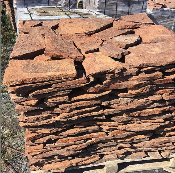 Красный камень получается путем обжига, камень плитняк помещаем в печь на 12 часов для обжига. После обжига нужно чтобы природный камень остыл.